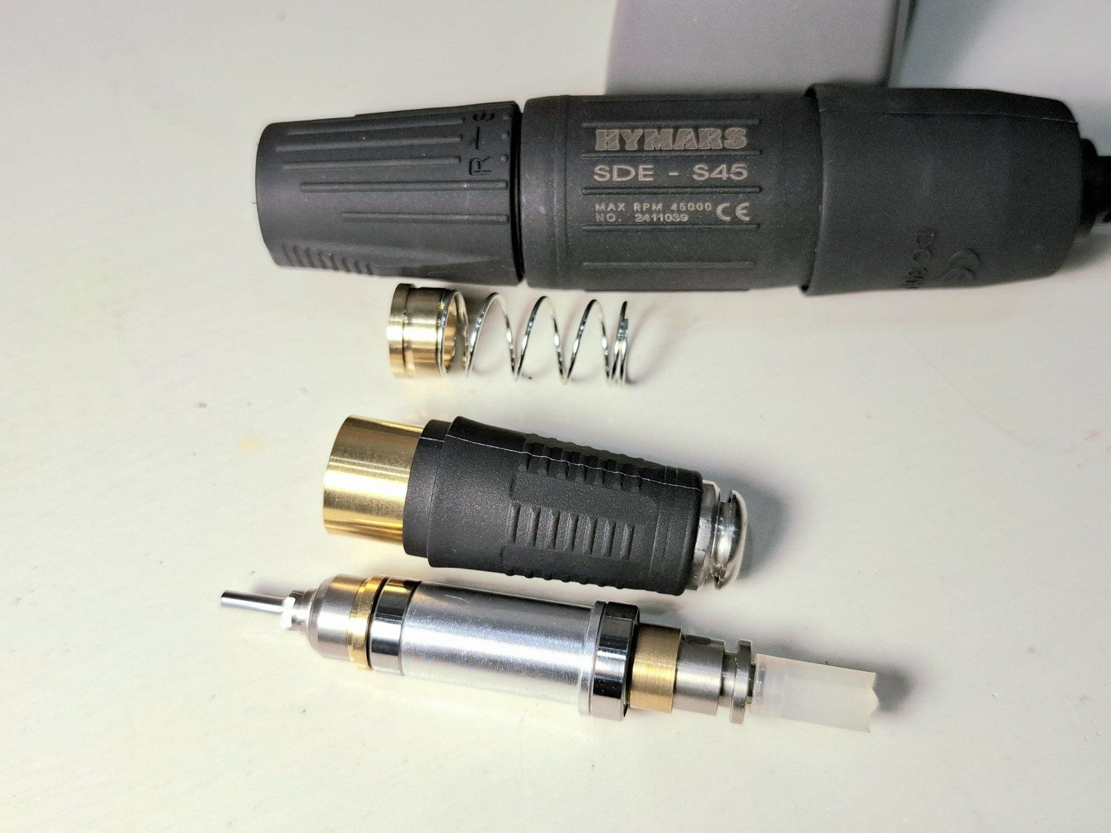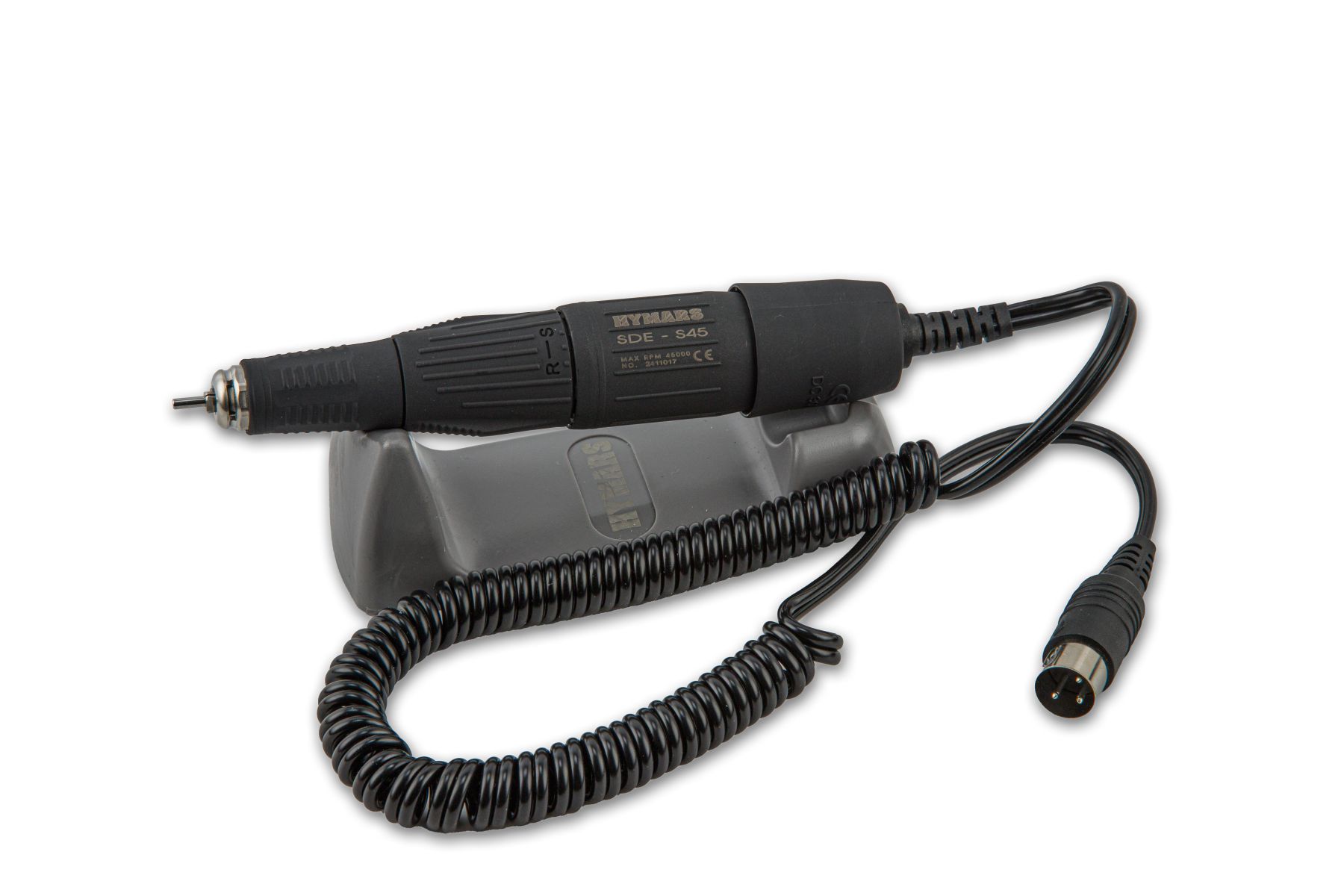 Фрезерный аппарат укомплектован ручкой HYMARS SDE-S45, максимальная рабочая скорость которой составляет 45000 об/мин, а крутящий момент – 3,2 Н·см.